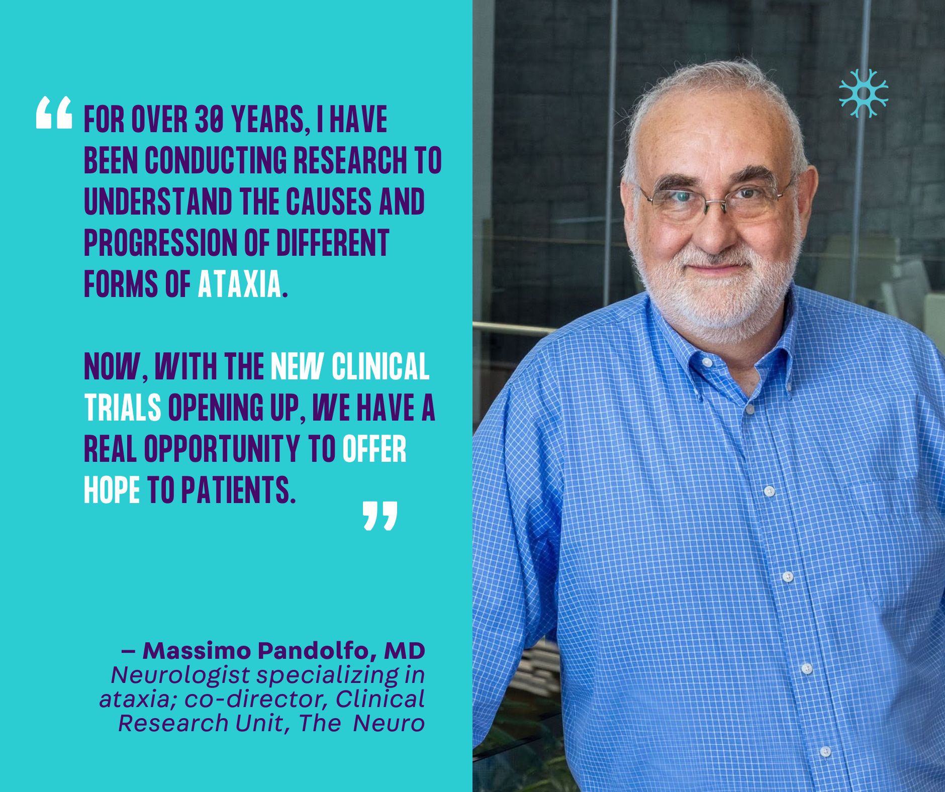A promising trial for SCA2, a form of ataxia overrepresented in Quebec, hopes that a small interfering RNA (siRNA) molecule can reduce the overproduction of ataxin-2, which becomes toxic and cause worsening coordination problems in people with the disease.