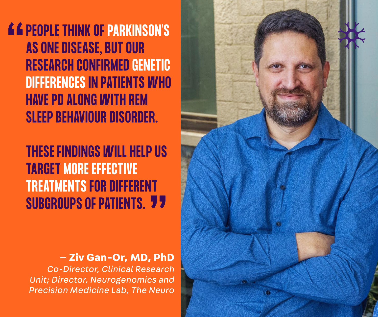 A study published in Nature NPJ by Ziv Gan-Or, co-director of the Neuro CRU, reveals a distinct genetic subtype of Parkinson’s linked to REM sleep behaviour disorder (RSBD). This subtype progresses more rapidly and presents non-motor symptoms such as depression and cognitive decline.